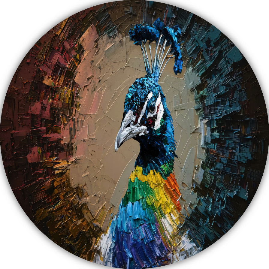 Dynamische kleurrijke pauw in abstracte stijl aluminium muurcirkel