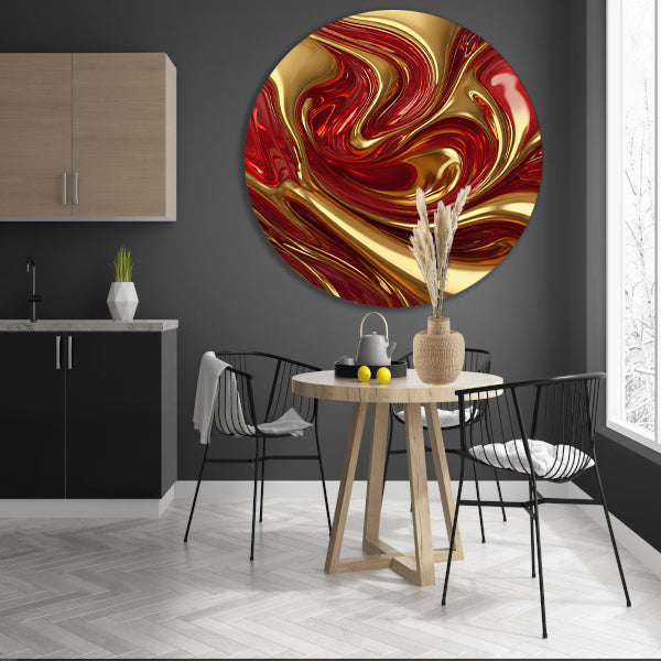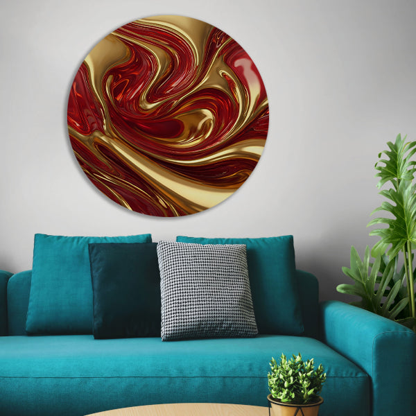 Dynamische Rode en Gouden Vloeistofbeweging aluminium muurcirkel