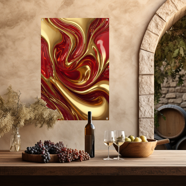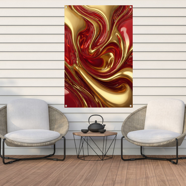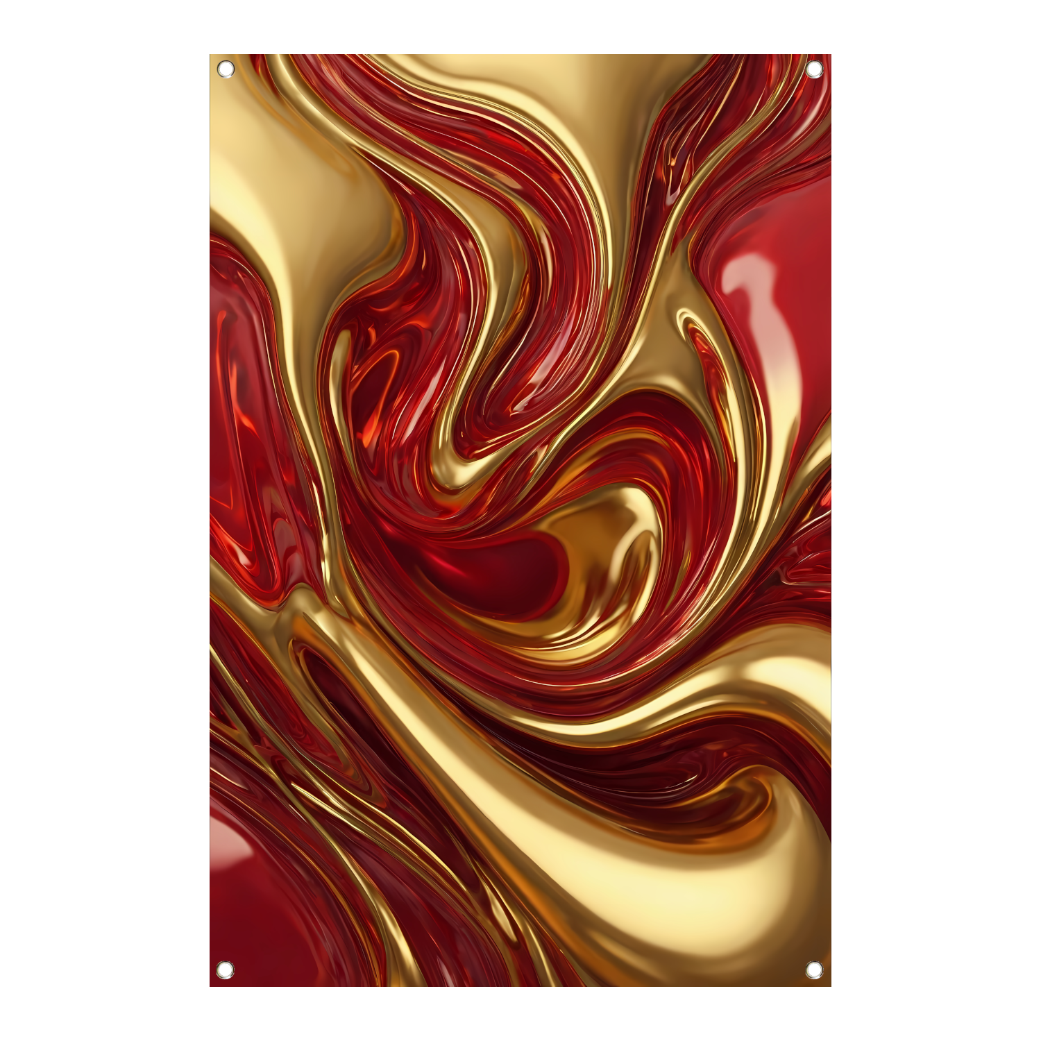 Dynamische Rode en Gouden Vloeistofbeweging tuinposter