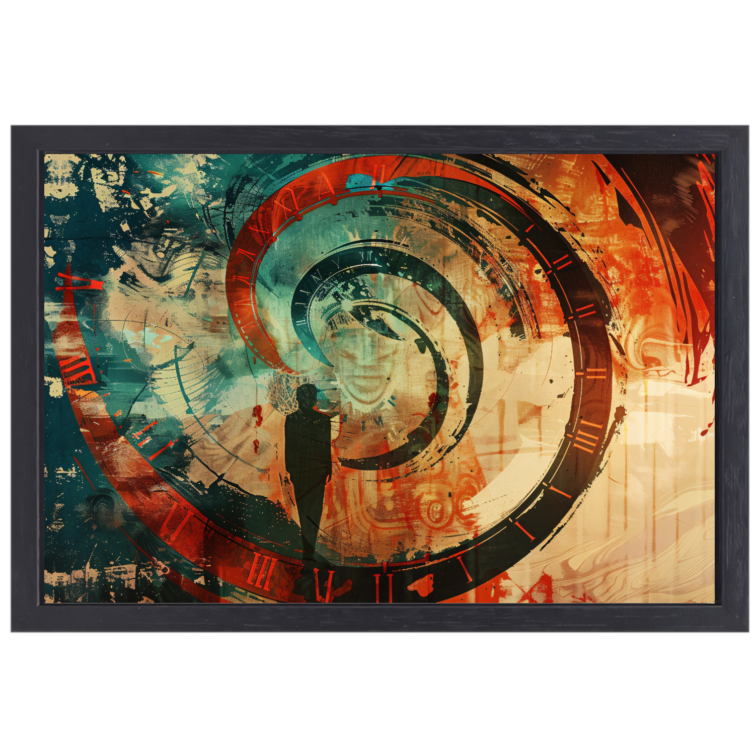 Dynamische Tijdsspiraal met Kleurrijke Elementen canvas met baklijst