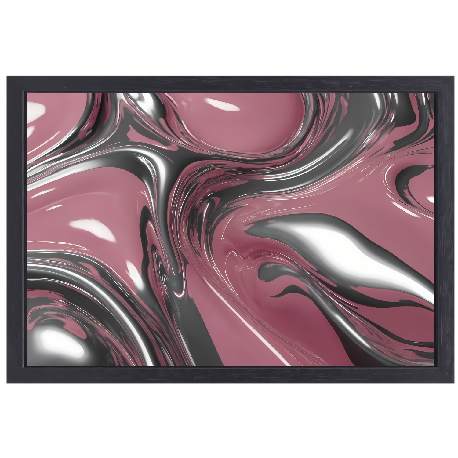 Dynamische Vloeiing in Zilver en Roze canvas met baklijst