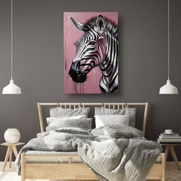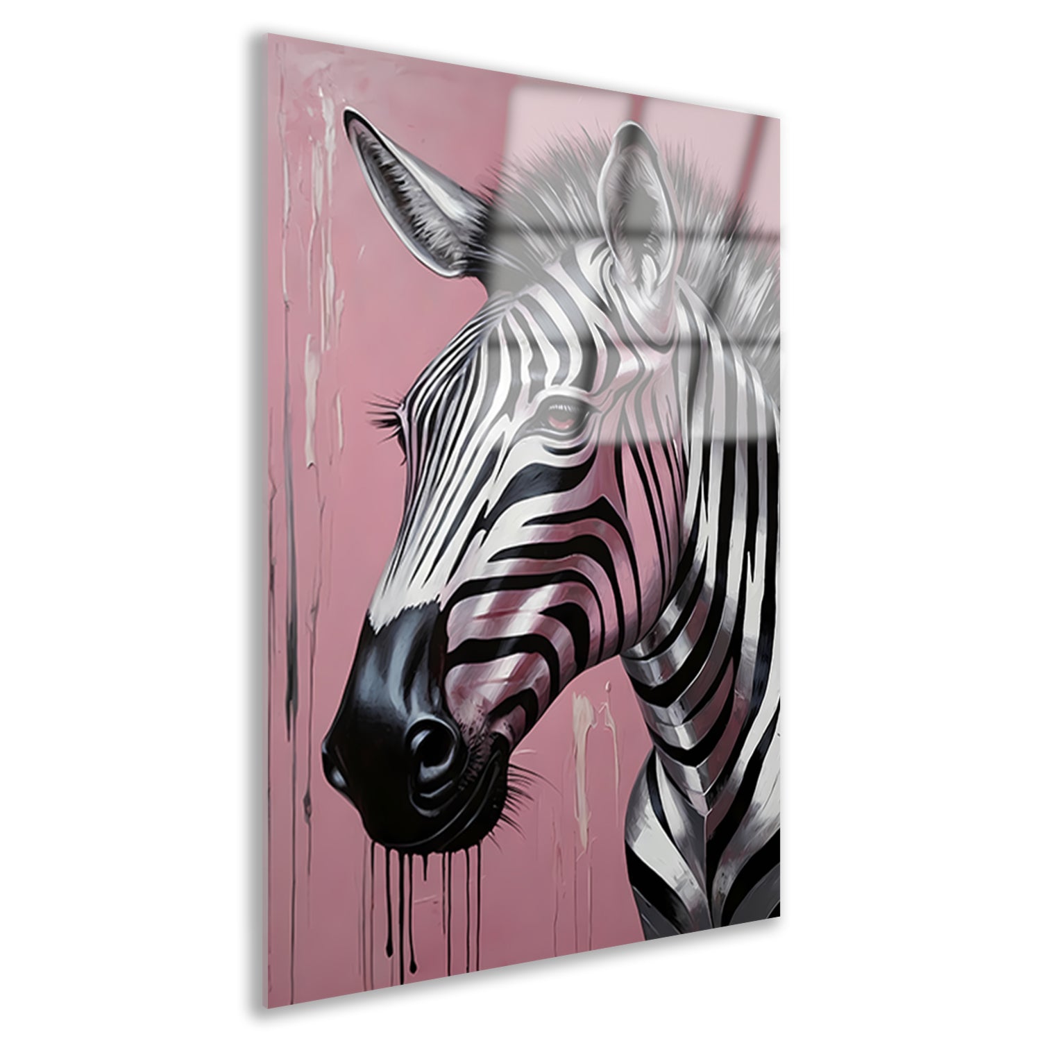 Voeg een vleugje natuurlijke elegantie toe aan elke kamer in huis met deze prachtige dynamische zebra op roze met zilveren druppels acrylglas. Bestel vandaag nog en geniet van een uniek en stijlvol kunstwerk dat je interieur zal verfraaien.
