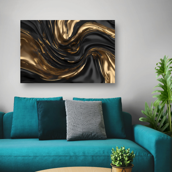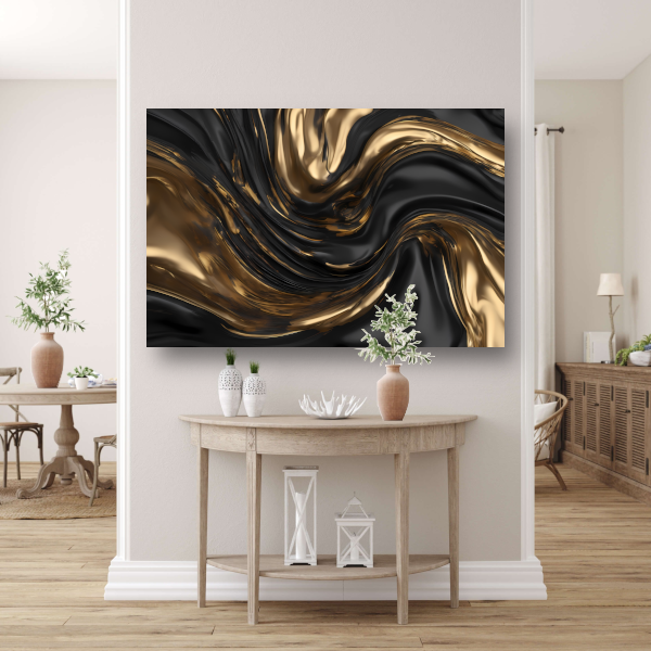 Dynamische Zwarte en Gouden Abstractie canvas met baklijst