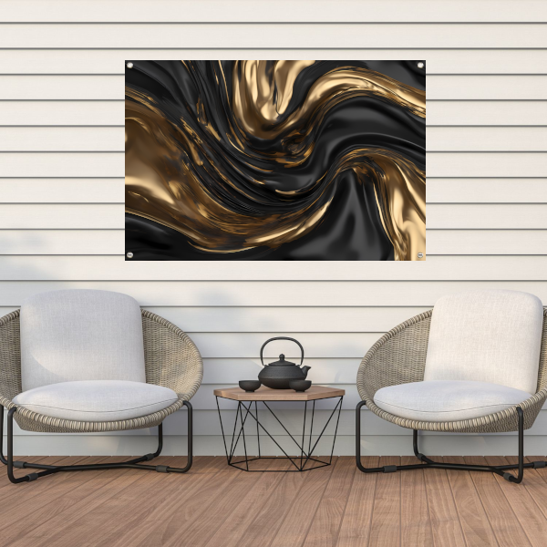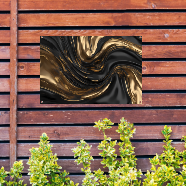 Met de Dynamische Zwarte en Gouden Abstractie tuinposter geef je jouw tuin een unieke en stijlvolle touch. Het is een duurzaam product van hoge kwaliteit, dat zeker een aanwinst zal zijn voor jouw buitenruimte.