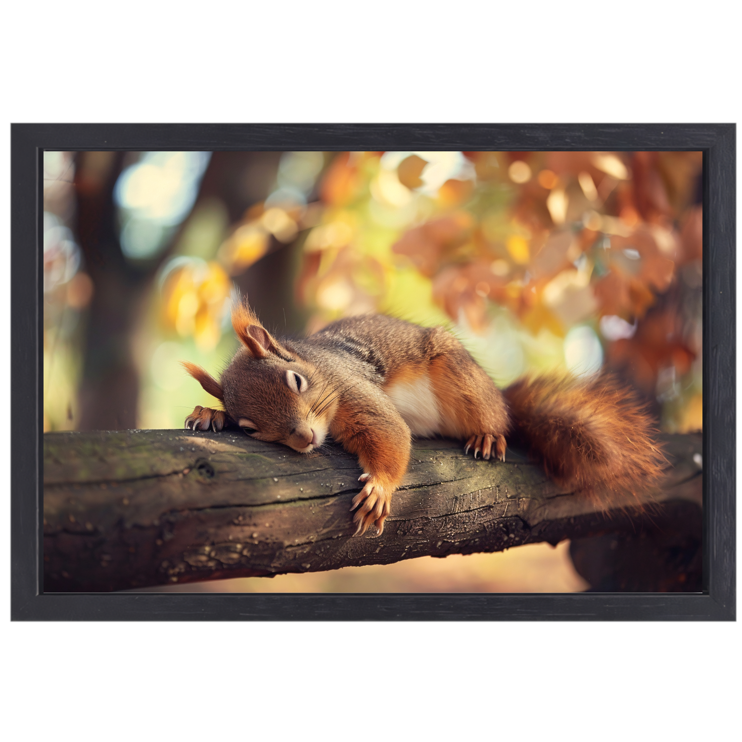 Eekhoorn geniet van herfstige rust canvas met baklijst