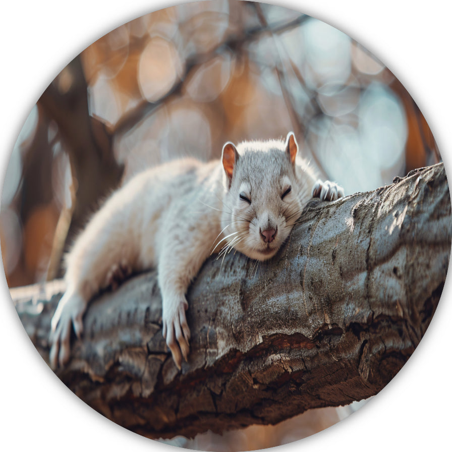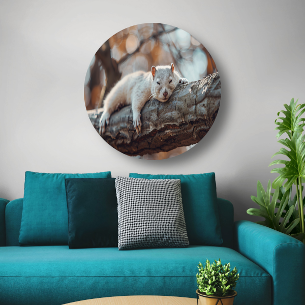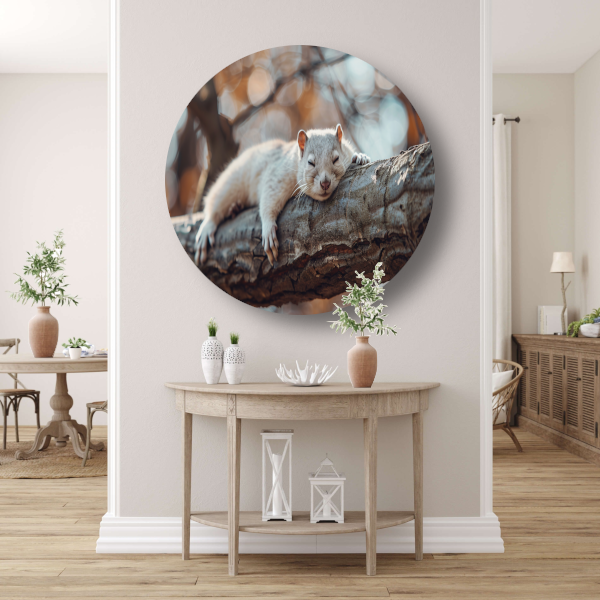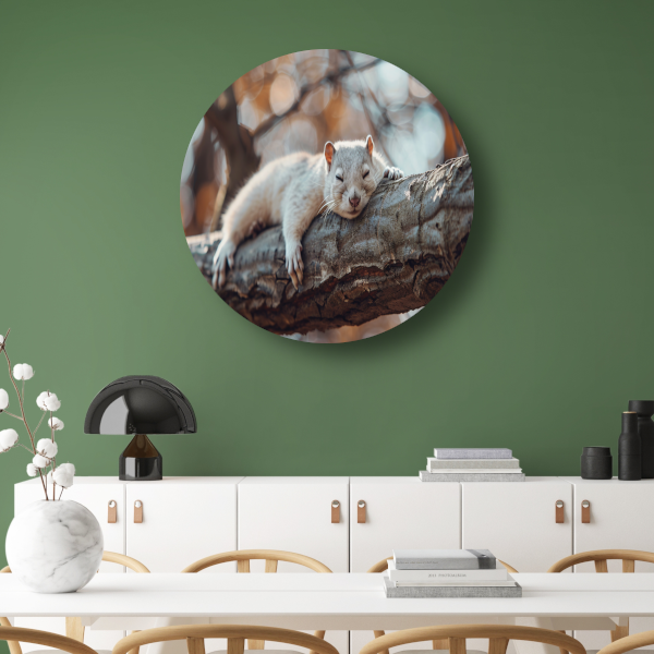 Eekhoorn rustend op herfsttak aluminium muurcirkel