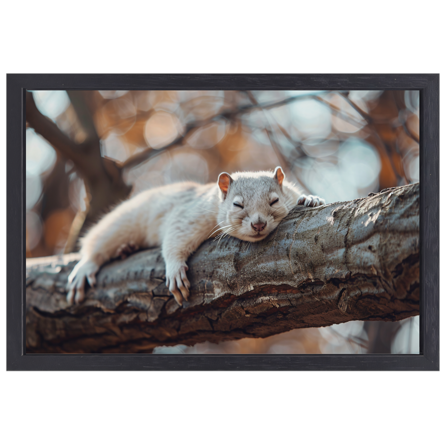 Eekhoorn rustend op herfsttak canvas met baklijst