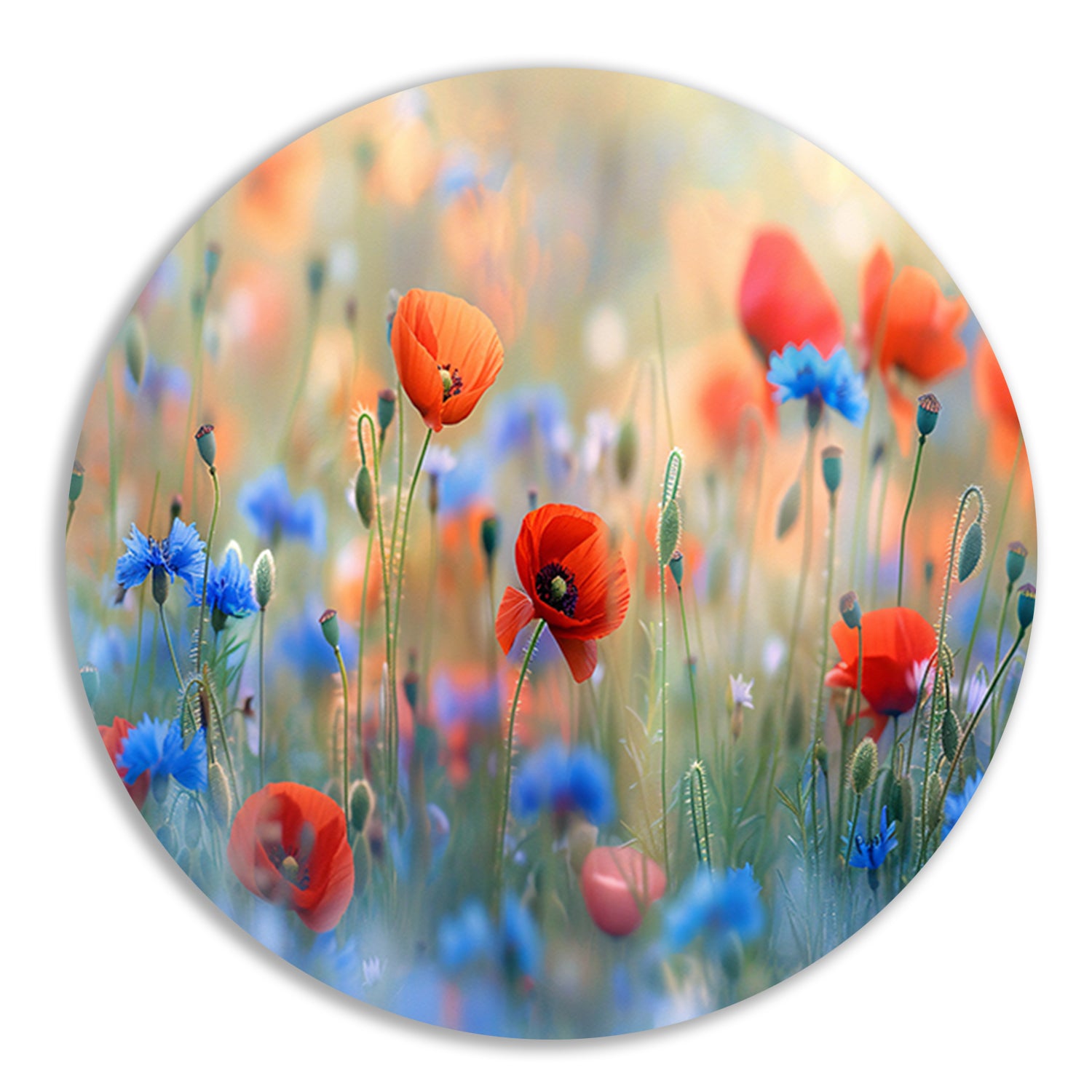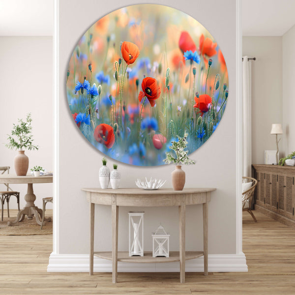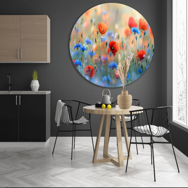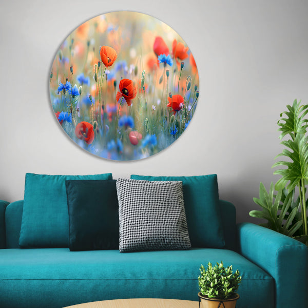 Een sereen veld van bloemen in pastelkleuren aluminium muurcirkel