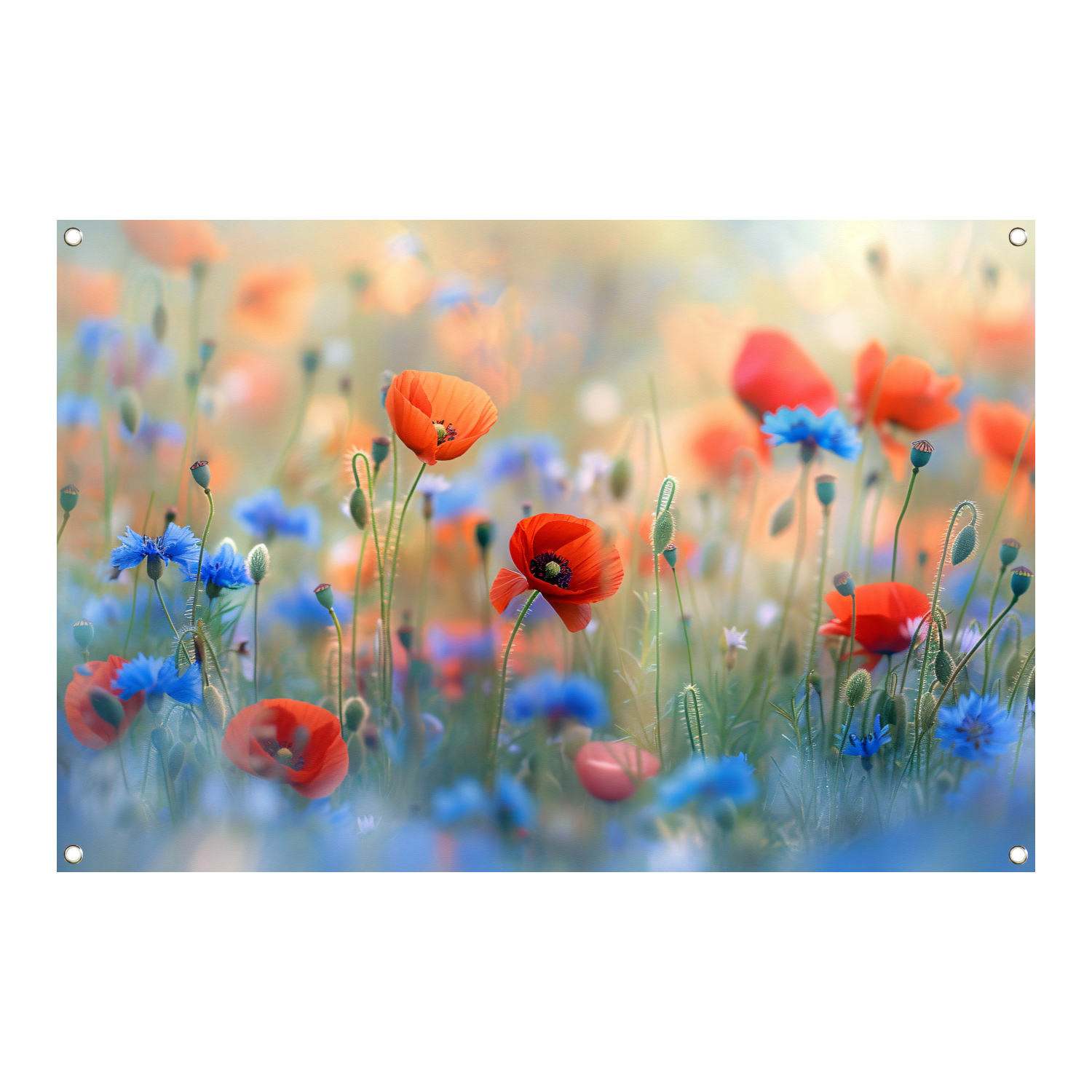 Een sereen veld van bloemen in pastelkleuren tuinposter