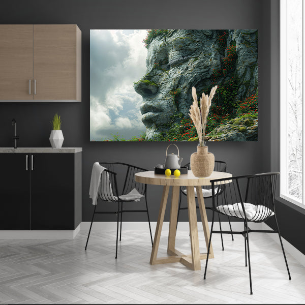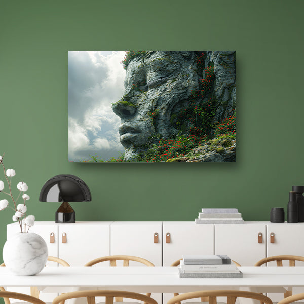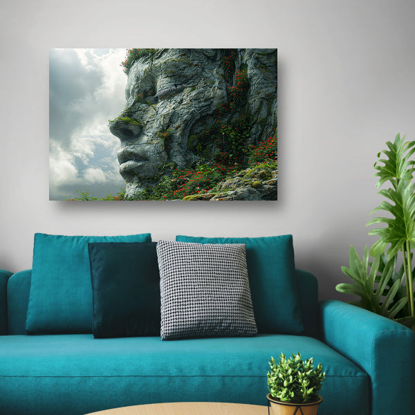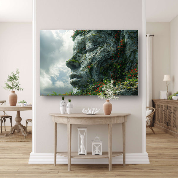 Een Steengezicht Begroeid met Wilde Bloemen poster