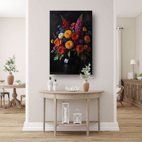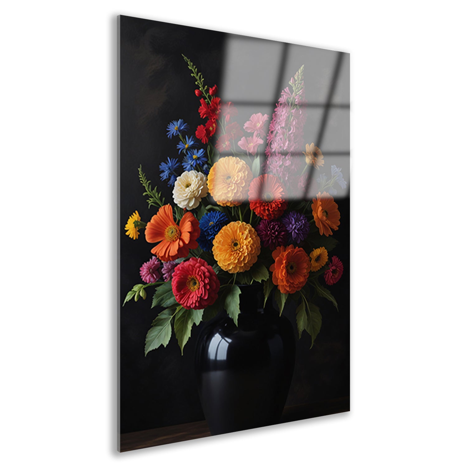 Een symfonie van bloemen in donkere elegantie acrylglas