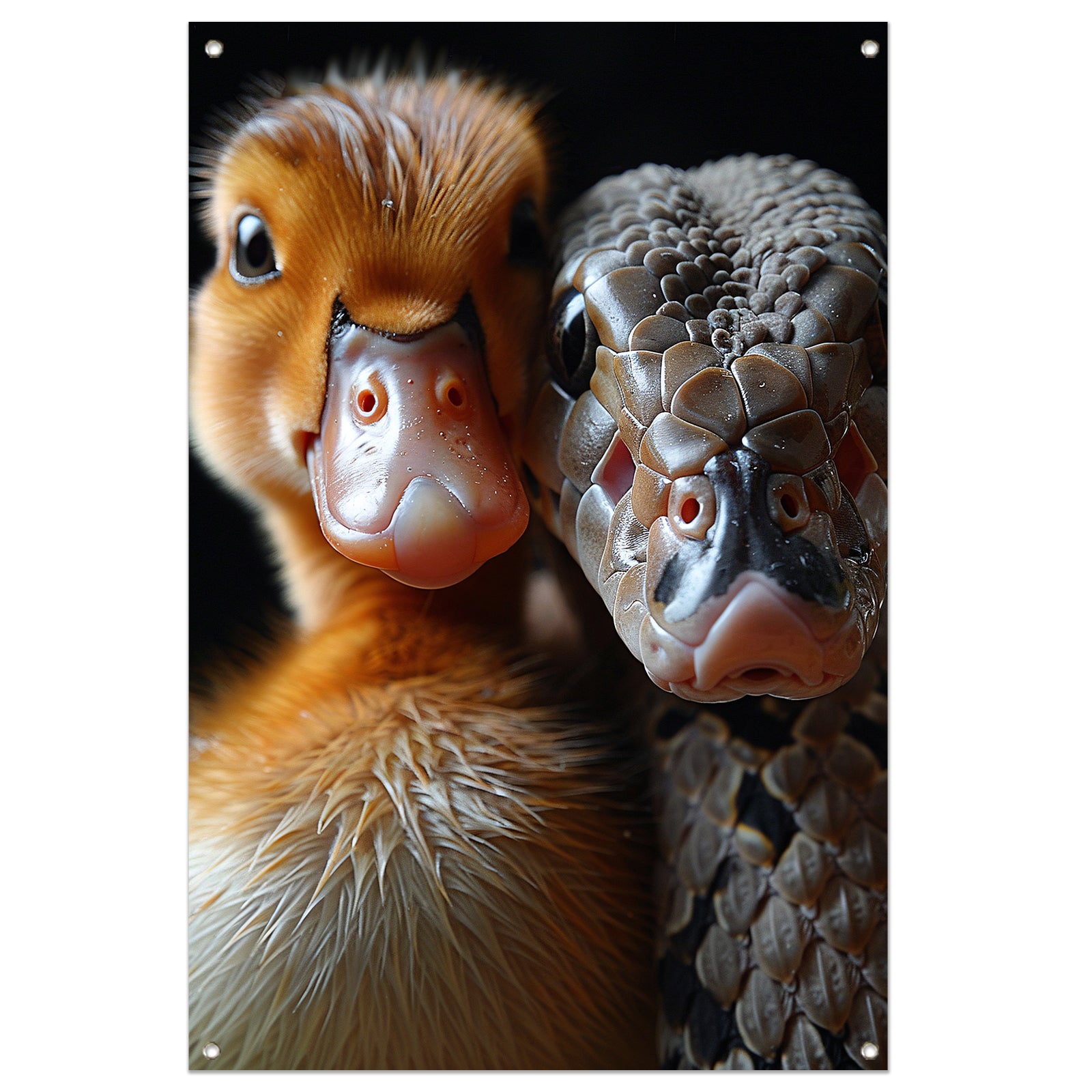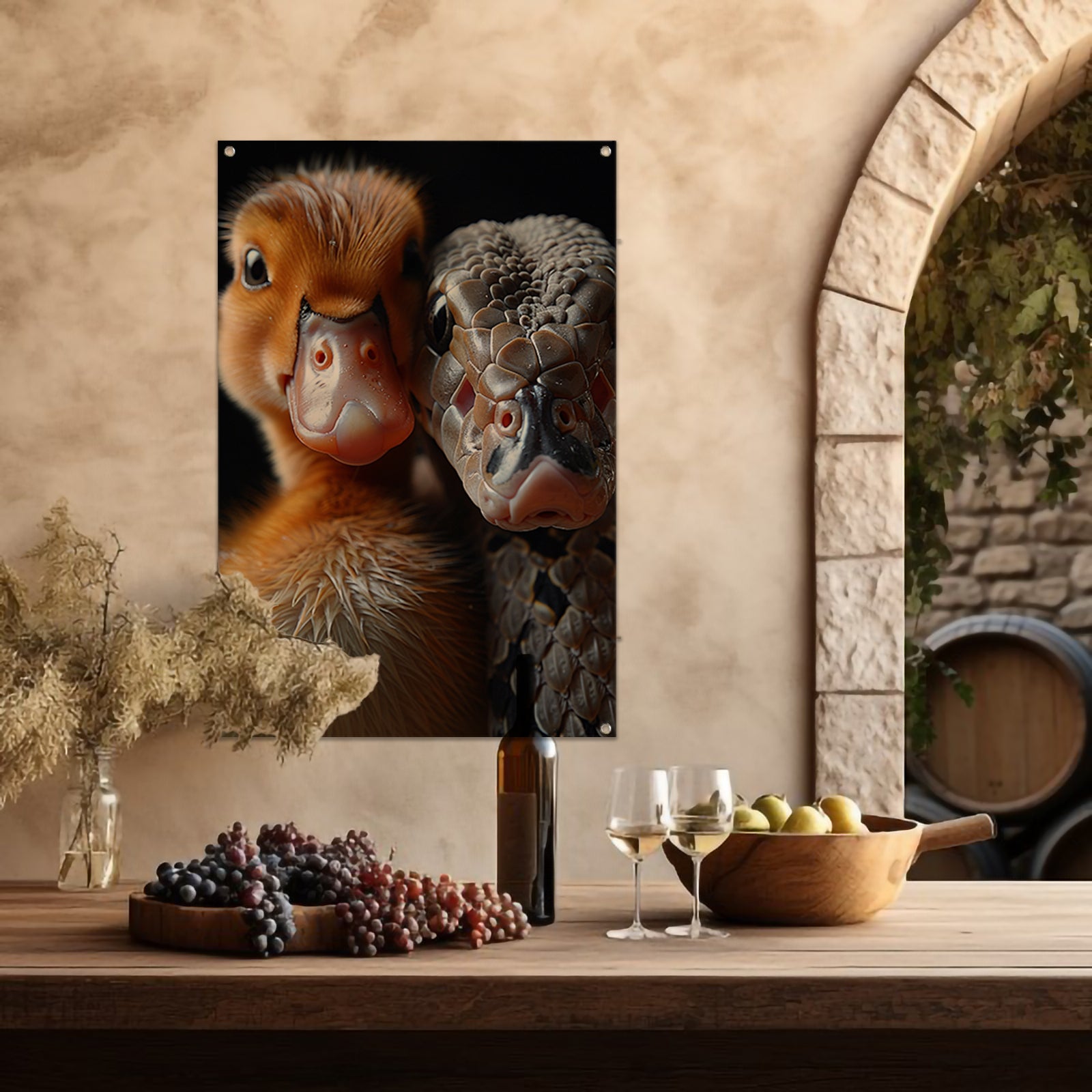 Onze tuinposters zijn UV- en waterbestendig, waardoor ze bestand zijn tegen zon en regen en hun kleuren langdurig mooi blijven. Alle tuinposters van De Muurdecoratie zijn voorzien van ringen in de hoeken, zodat je ze eenvoudig kunt ophangen. Let op: onze tuinposters worden niet met ophangsysteem geleverd.