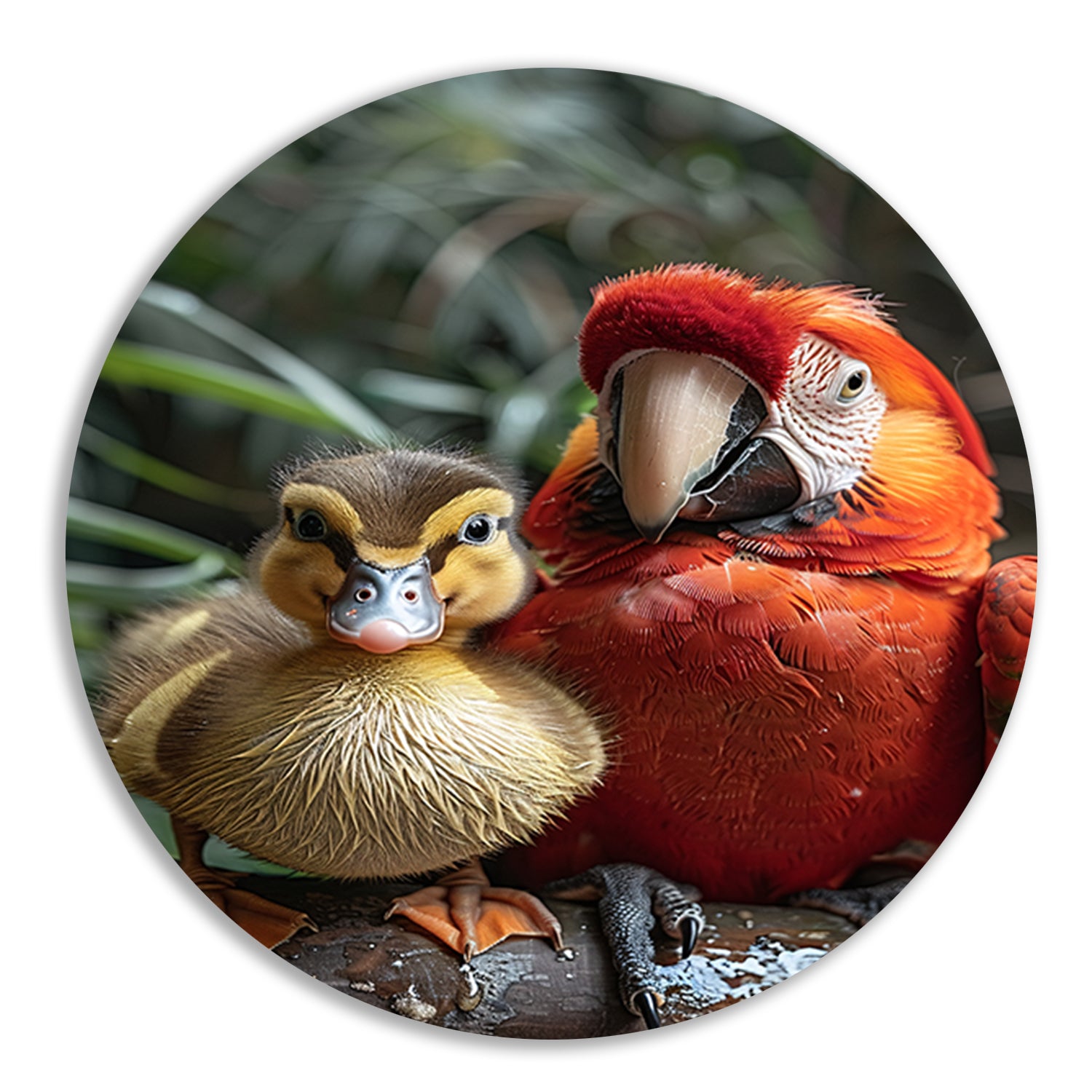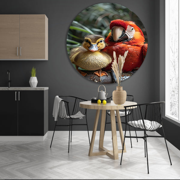Eendenkuiken en Ara: Een Onverwachte Vriendschap aluminium muurcirkel