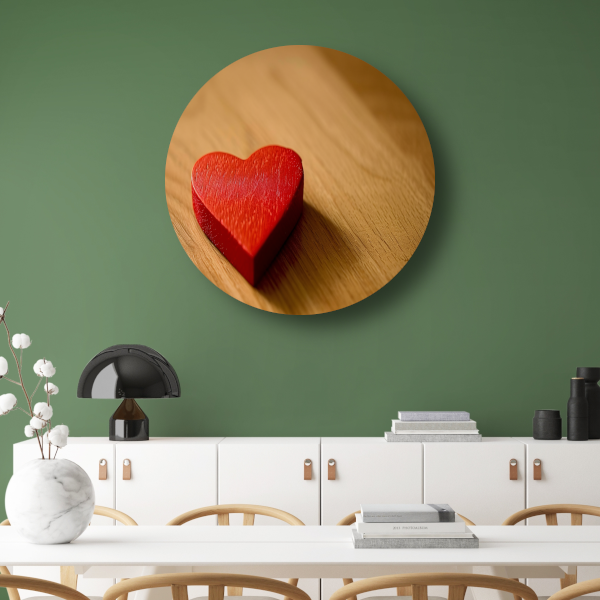 Eenvoudig Rood Hart op Houten Ondergrond aluminium muurcirkel