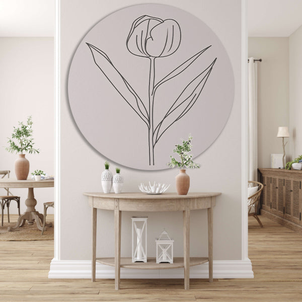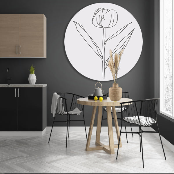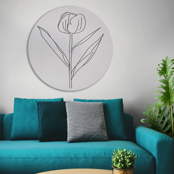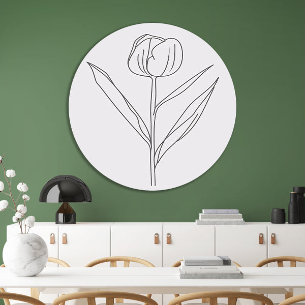 Eenvoudige tulplijntekening voor moderne inrichting aluminium muurcirkel