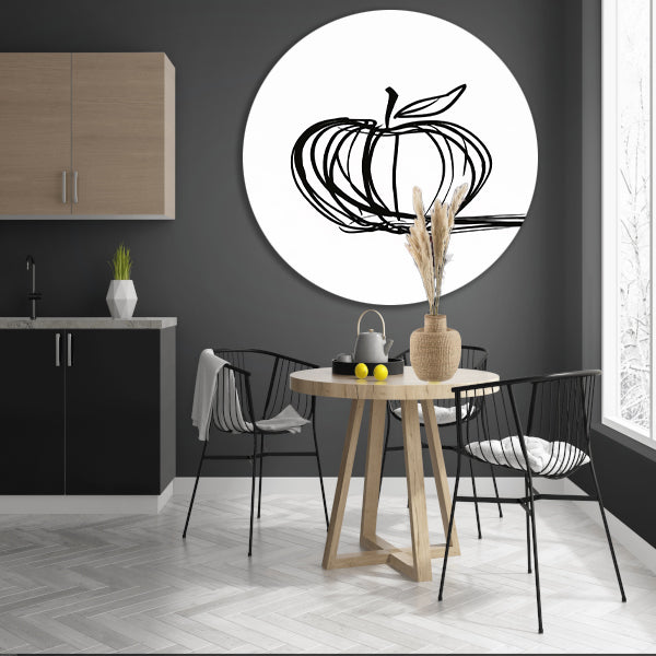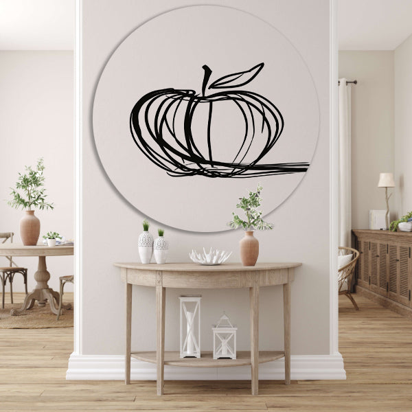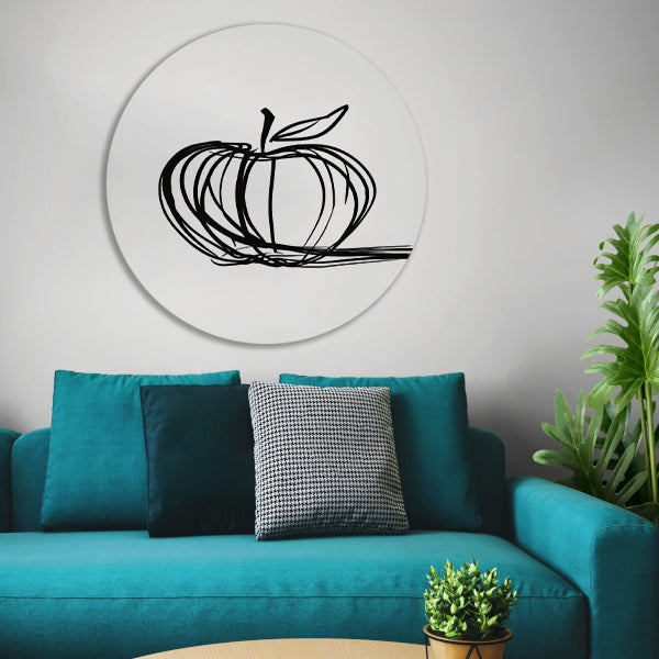 Eenvoudige Zwarte Lijnen Appel Illustratie aluminium muurcirkel
