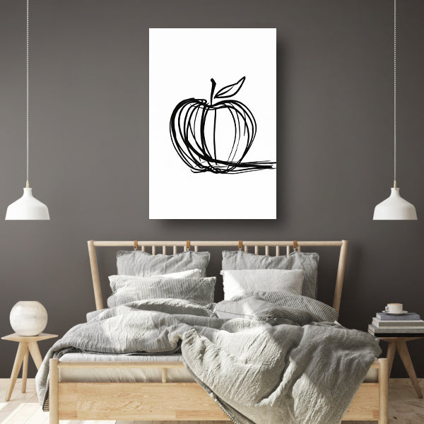 Eenvoudige Zwarte Lijnen Appel Illustratie canvas