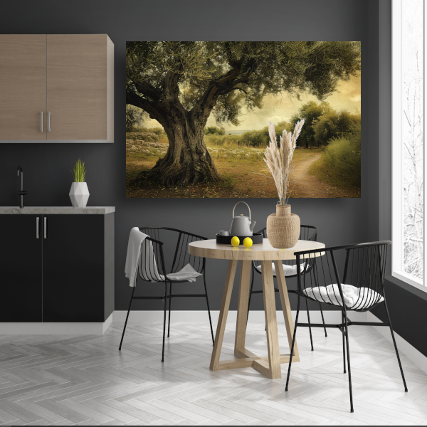 Het kunstwerk wordt geleverd met een ophangplaat, waardoor je het eenvoudig aan de muur kunt bevestigen. Zo kun je snel genieten van dit prachtige stukje natuur in je interieur. De eenzame boom op de landweg zal zeker een blikvanger zijn in elke kamer en een gevoel van sereniteit en rust brengen.