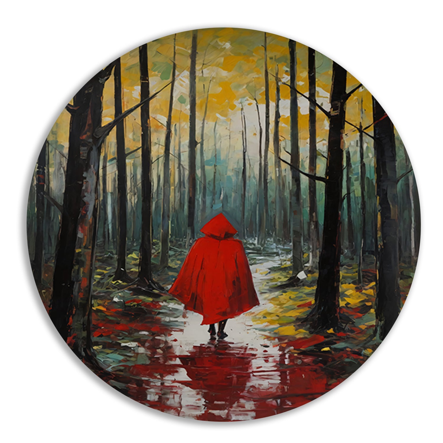Eenzame figuur in Herfstbos met Rode Mantel forex muurcirkel