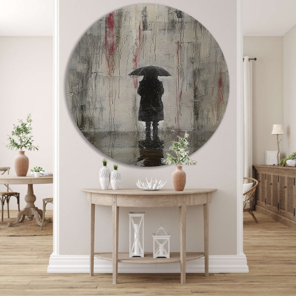 Eenzame Figuur Onder Reflecterende Regen aluminium muurcirkel
