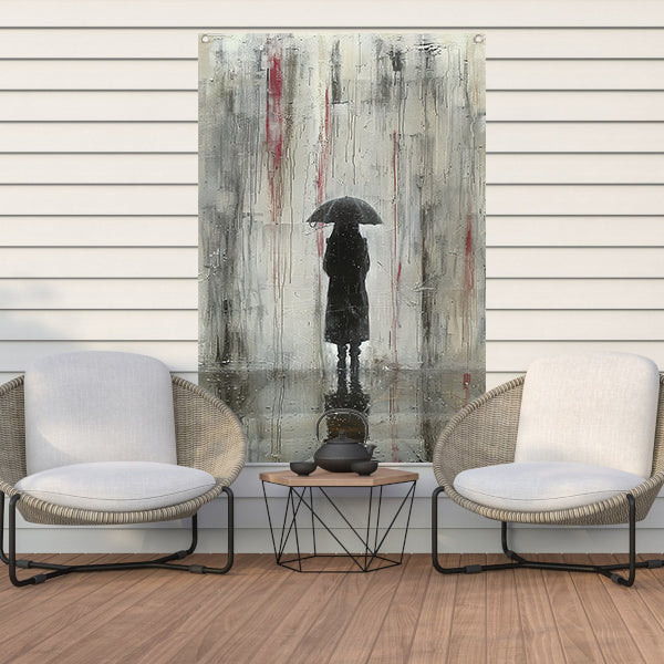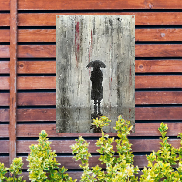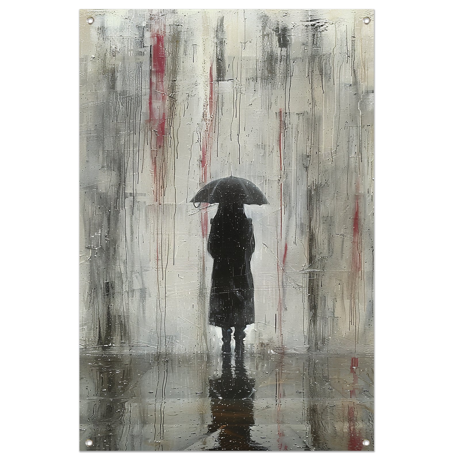 Eenzame Figuur Onder Reflecterende Regen tuinposter