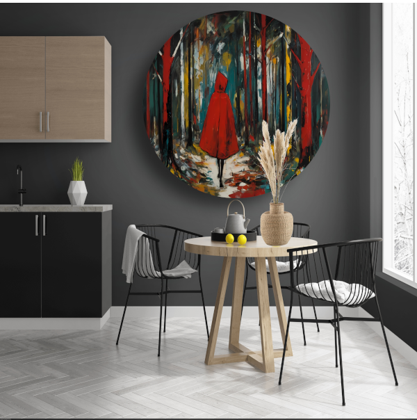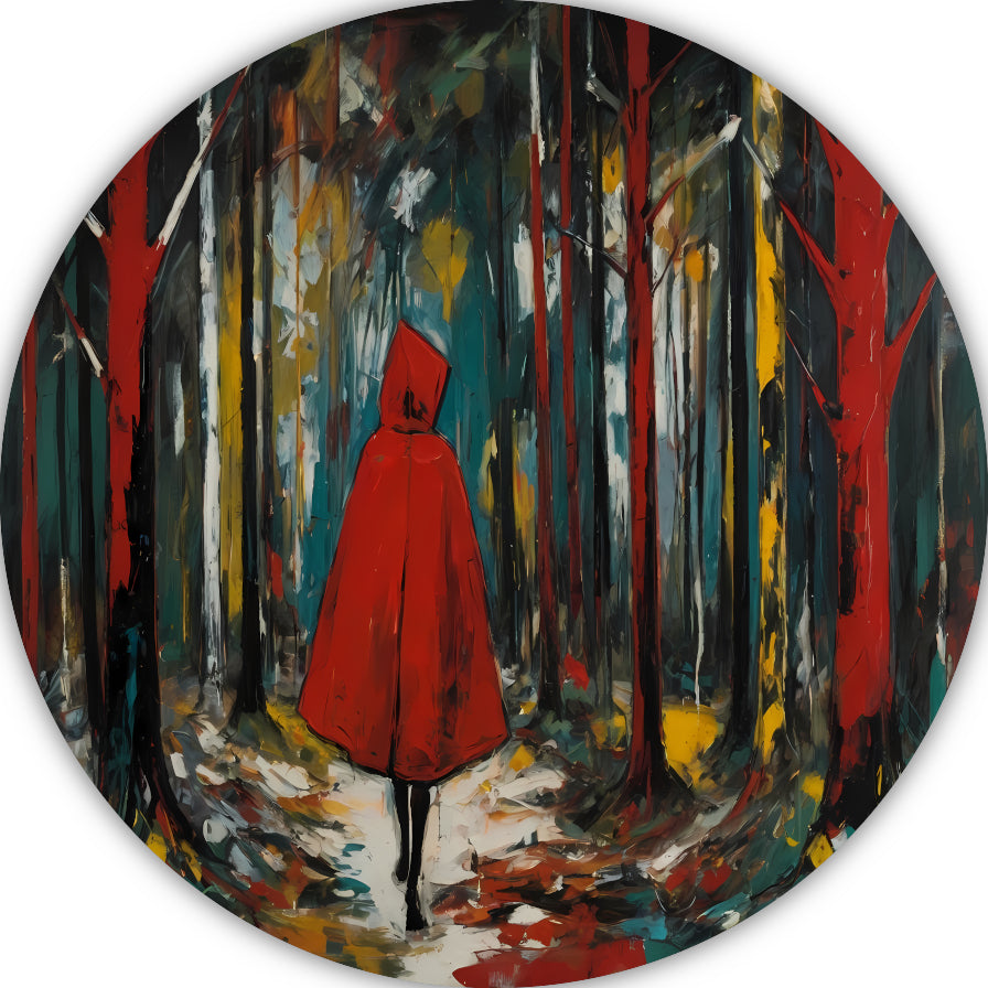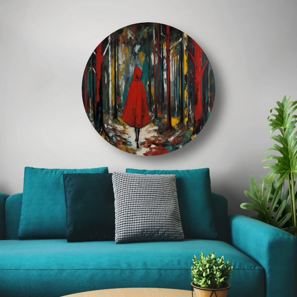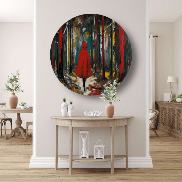 Eenzame Rode Figuur Wandelend in Kleurrijk Bos forex muurcirkel