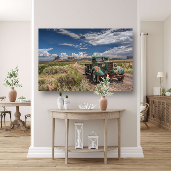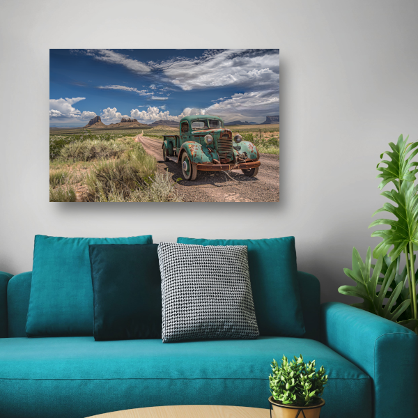 Eenzame vrachtwagen op verlaten weg poster
