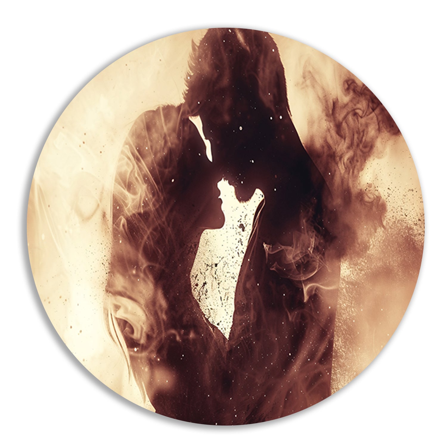 Met zijn tijdloze afbeelding en hoogwaardige materiaal is deze muurcirkel een echte blikvanger in huis. Voeg een vleugje elegantie en stijl toe aan jouw interieur met deze eeuwige omhelzing in sepia tonen op aluminium muurcirkel.