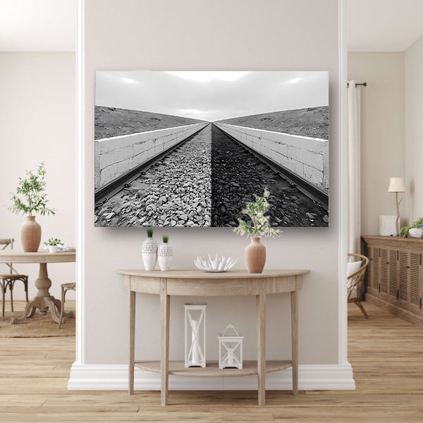 Geef je woonkamer, slaapkamer of kantoor een stijlvolle uitstraling met deze moderne en unieke wanddecoratie. De afbeelding van eindeloze sporen tussen ommuurde grenzen zal zeker een gespreksonderwerp zijn voor je gasten. Bestel vandaag nog en geef je interieur een upgrade met deze prachtige acrylglas wanddecoratie.