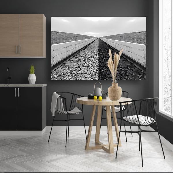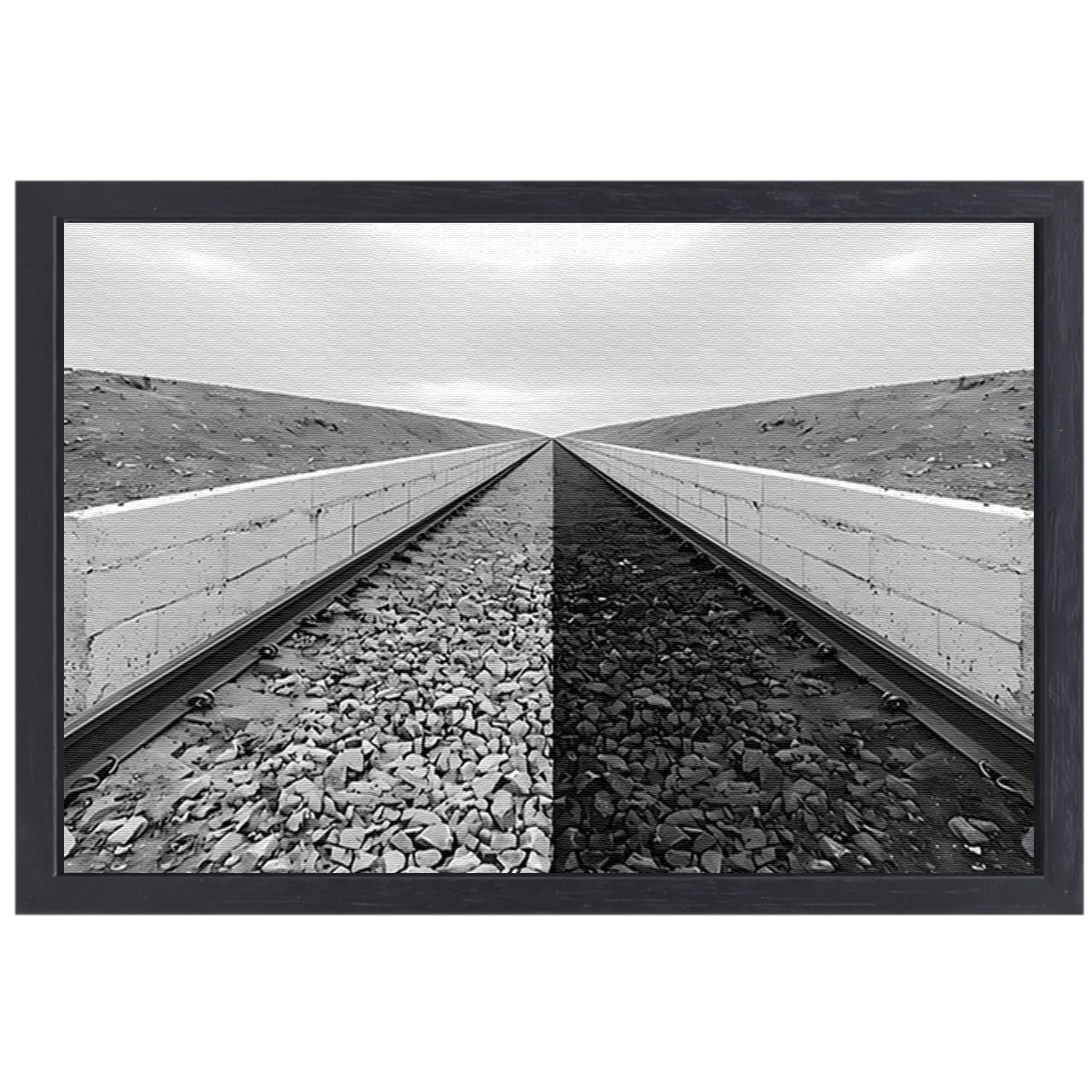 Eindeloze sporen tussen ommuurde grenzen canvas met baklijst