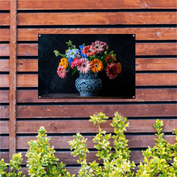 Onze tuinposters zijn UV- en waterbestendig, waardoor ze bestand zijn tegen zon en regen en hun kleuren langdurig mooi blijven. Alle tuinposters van De Muurdecoratie zijn voorzien van ringen in de hoeken, zodat je ze eenvoudig kunt ophangen. Let op: onze tuinposters worden niet met ophangsysteem geleverd.