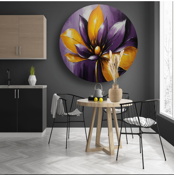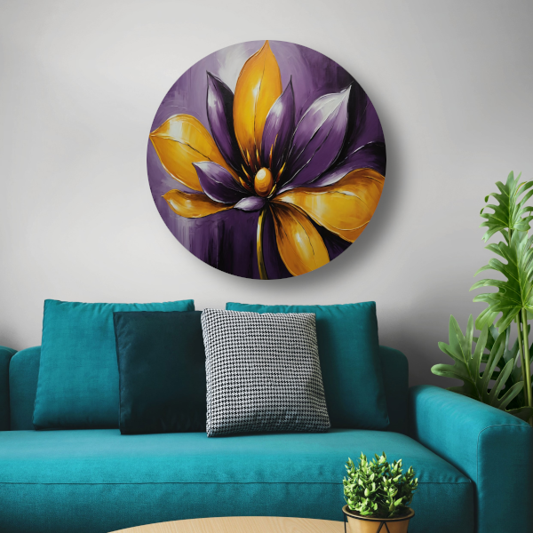 Elegant Purple and Yellow Flower in Bloom aluminium muurcirkel