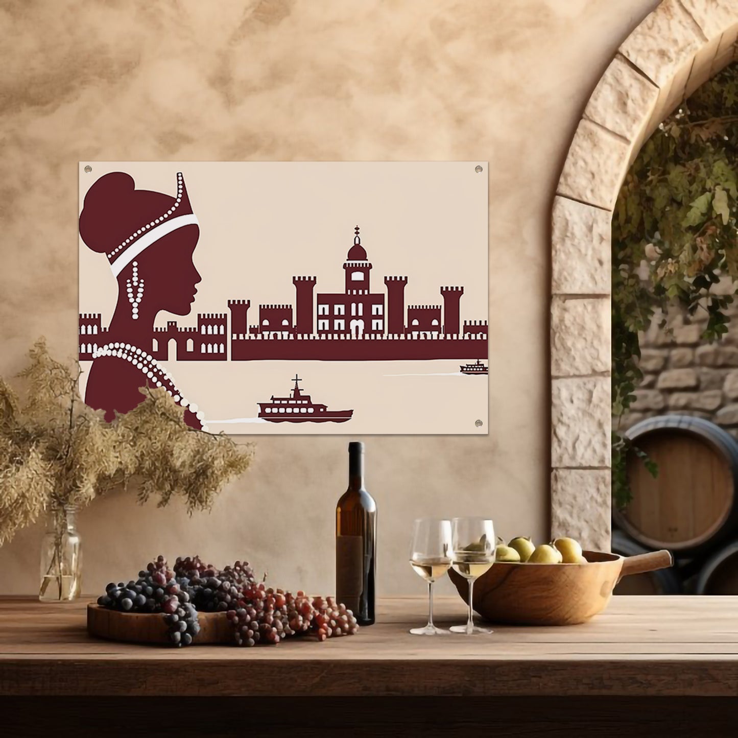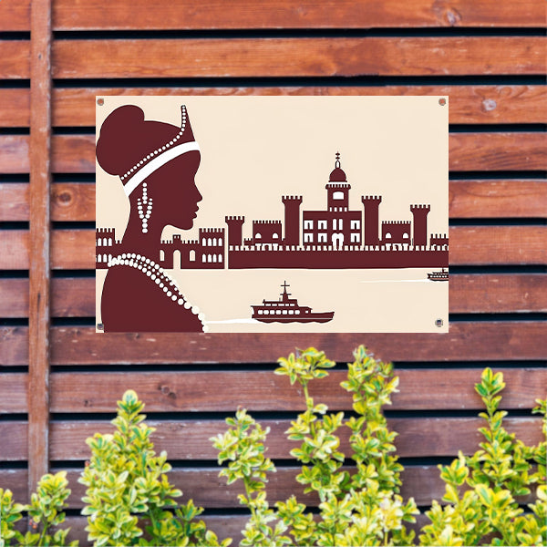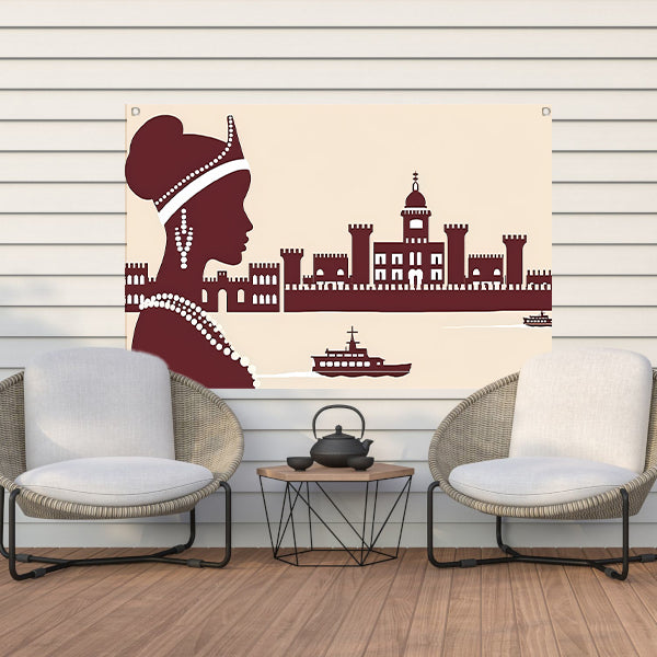 Elegant silhouet van Afrikaanse vrouw met kasteel tuinposter