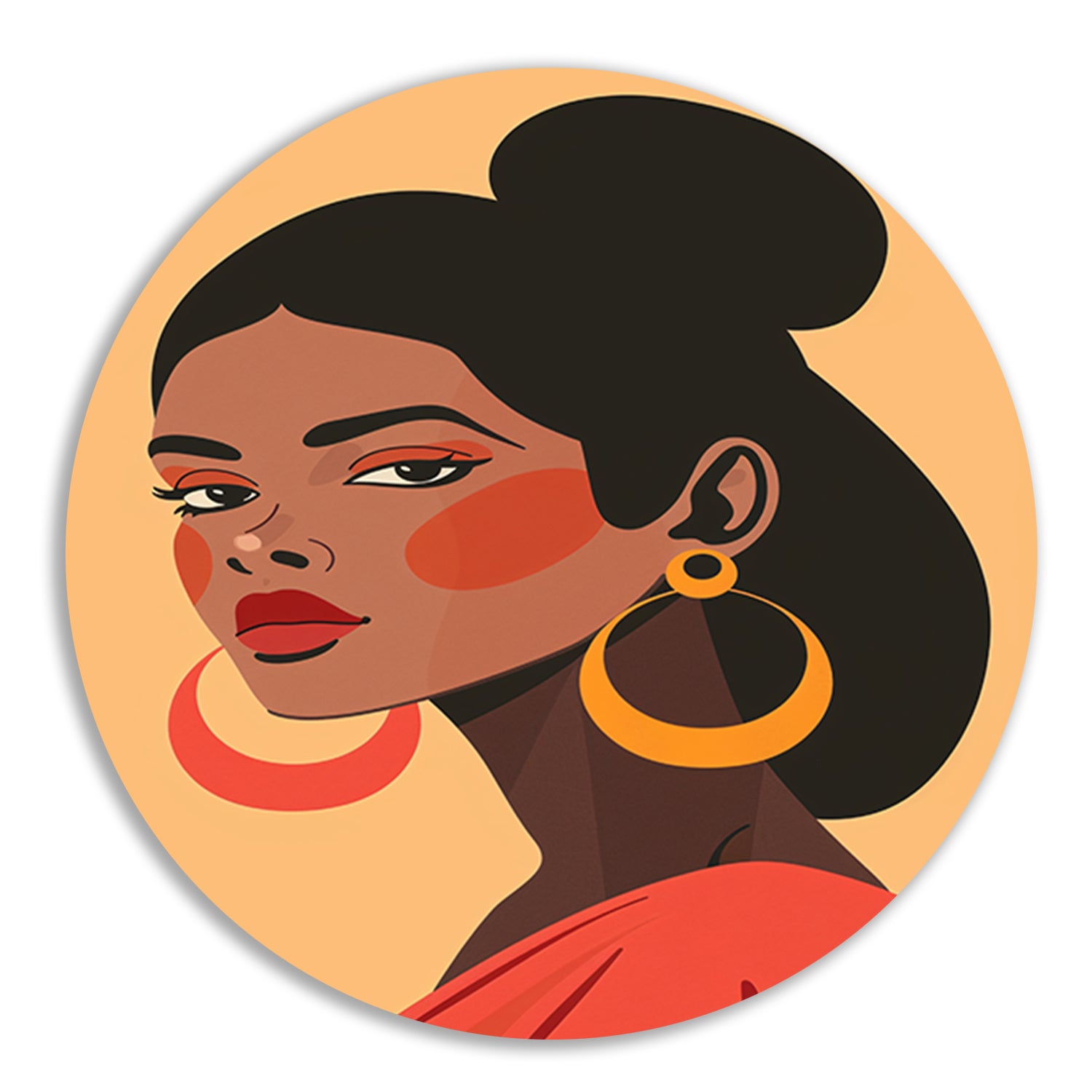 Elegante Dame in Rood met Gouden Oorbel aluminium muurcirkel