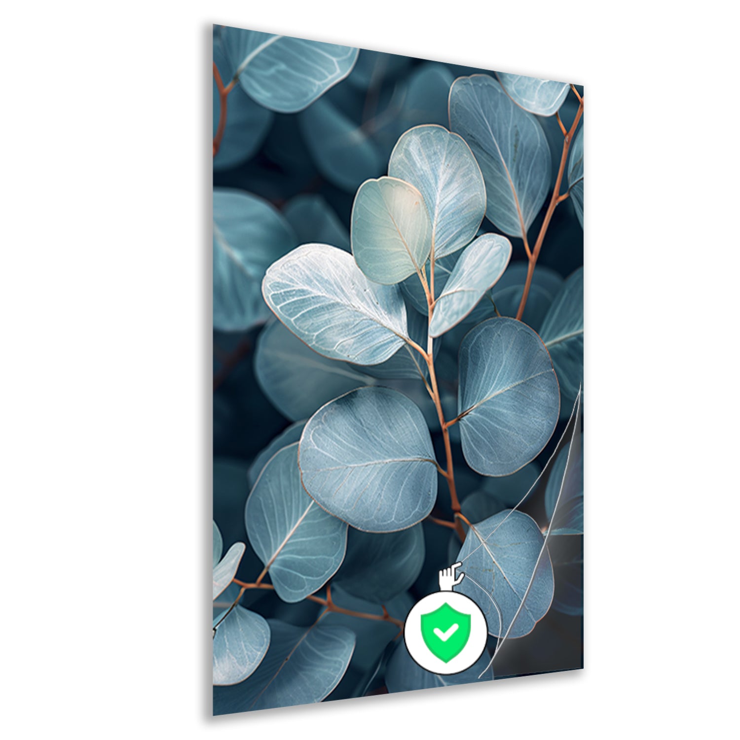 Elegante eucalyptusbladeren in zilveren en blauwe tinten poster