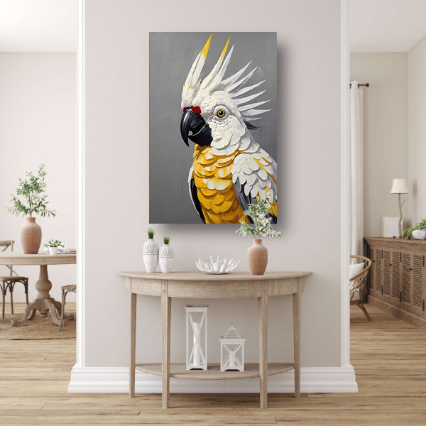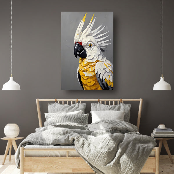 Elegante Geelkuifkaketoe in Moderne Kunst canvas met baklijst
