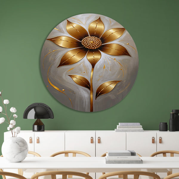 Elegante Gouden Bloesem op Abstracte Achtergrond aluminium muurcirkel