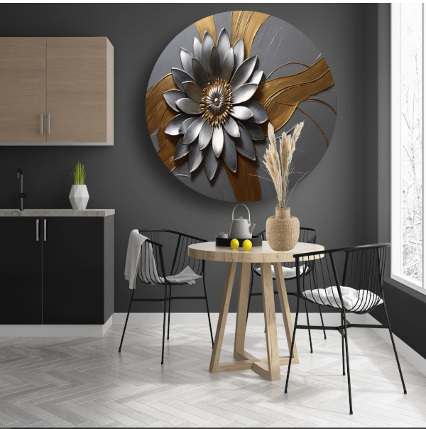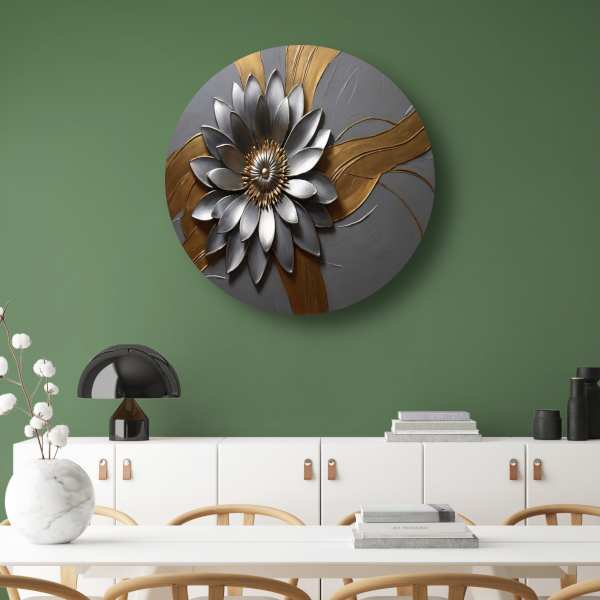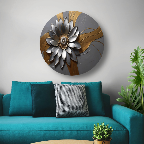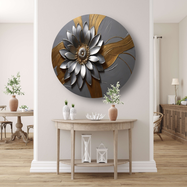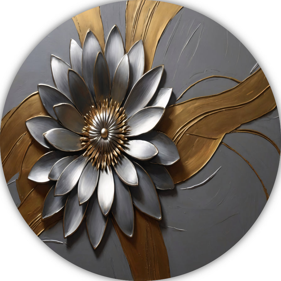 Elegante Gouden en Zilveren Bloem Kunst aluminium muurcirkel