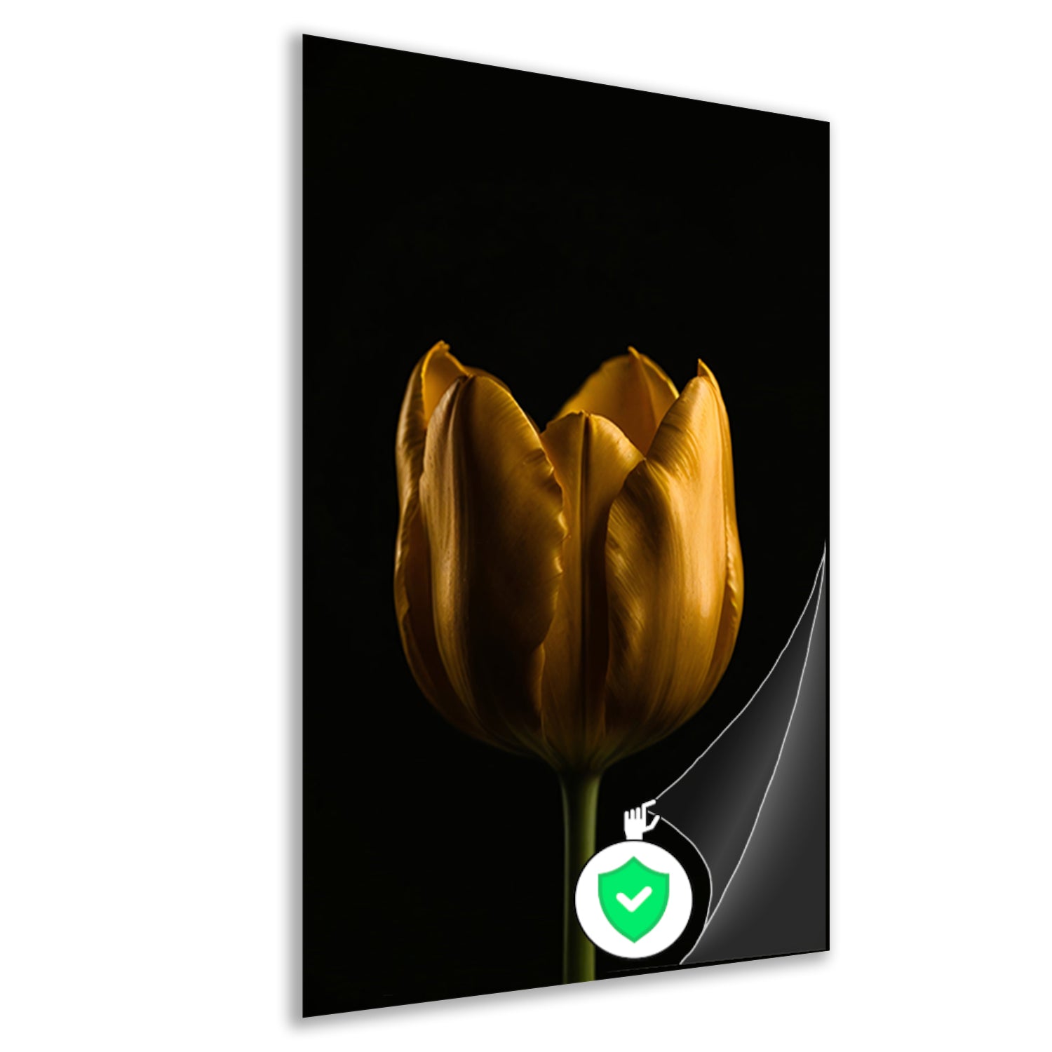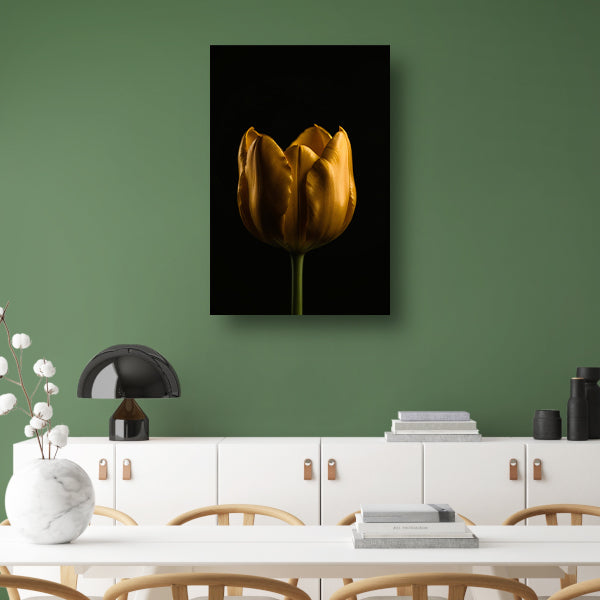 Elegante Gouden Tulp tegen Diepzwarte Achtergrond poster