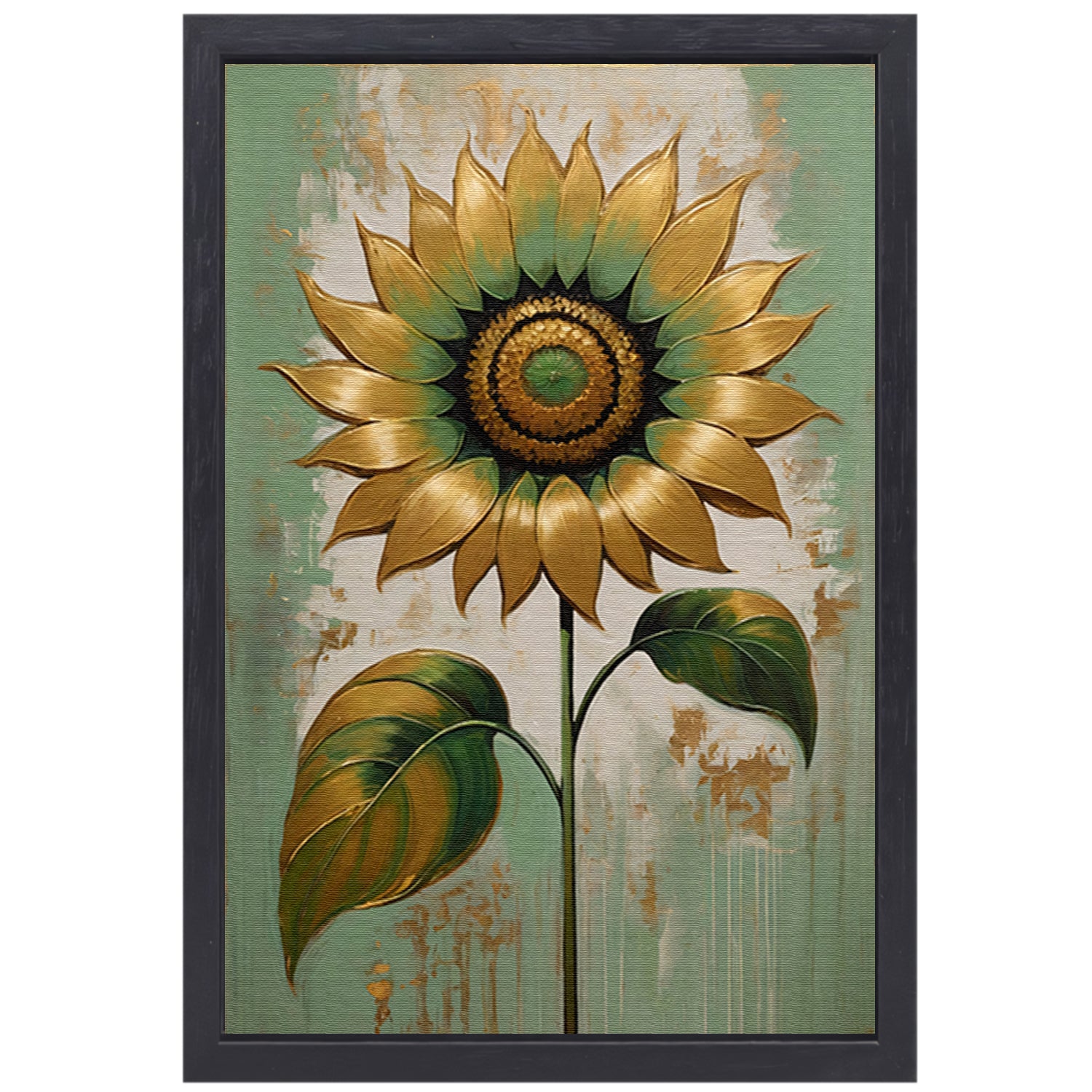 Elegante Gouden Zonnebloem op Groen canvas met baklijst
