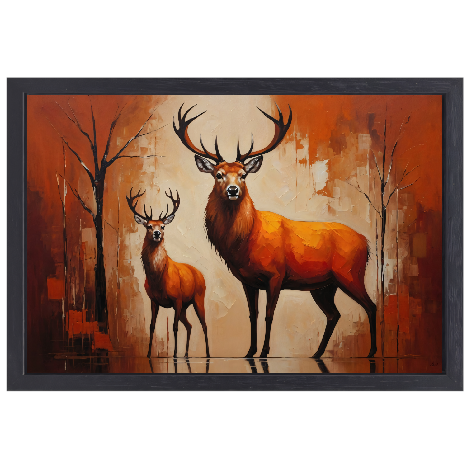 Elegante herten in oranje herfstglorie canvas met baklijst