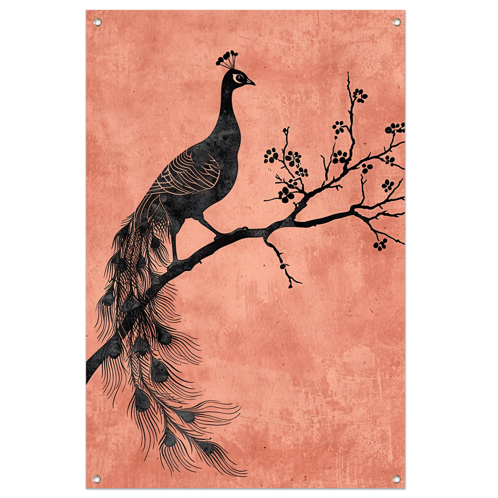 Elegante minimalistische pauw op een tak tuinposter