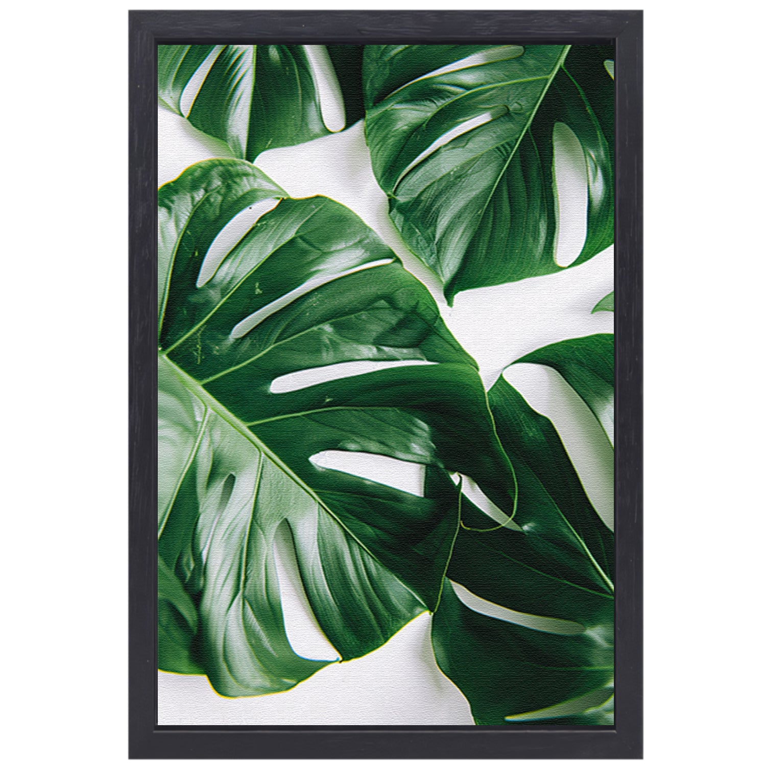 Elegante Monstera bladeren op helderwitte achtergrond canvas met baklijst