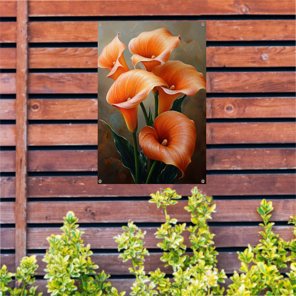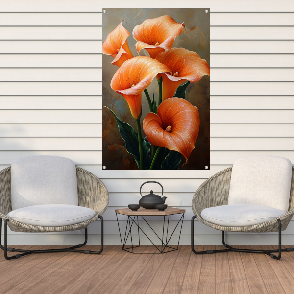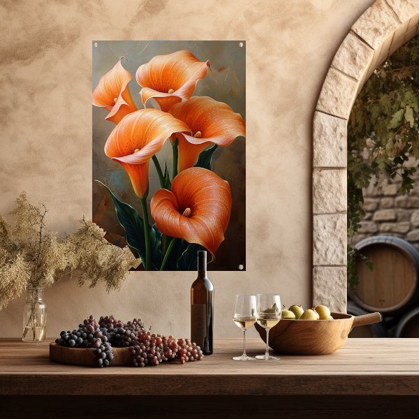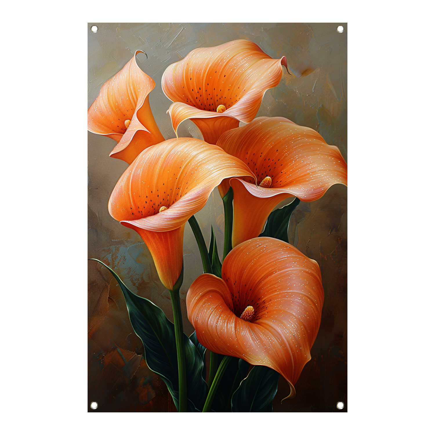 Elegante Oranje Calla Lelies op Schilderij tuinposter