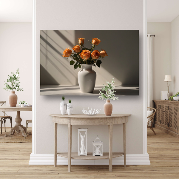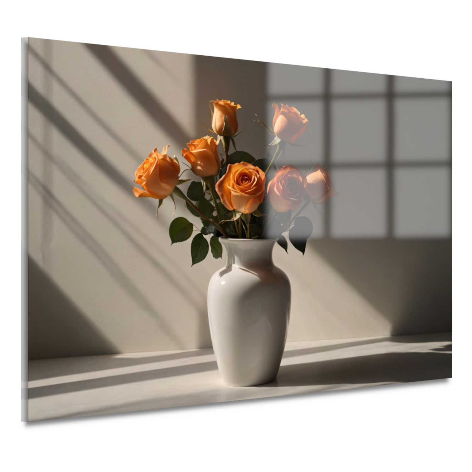 Elegante oranje rozen in witte vaas acrylglas