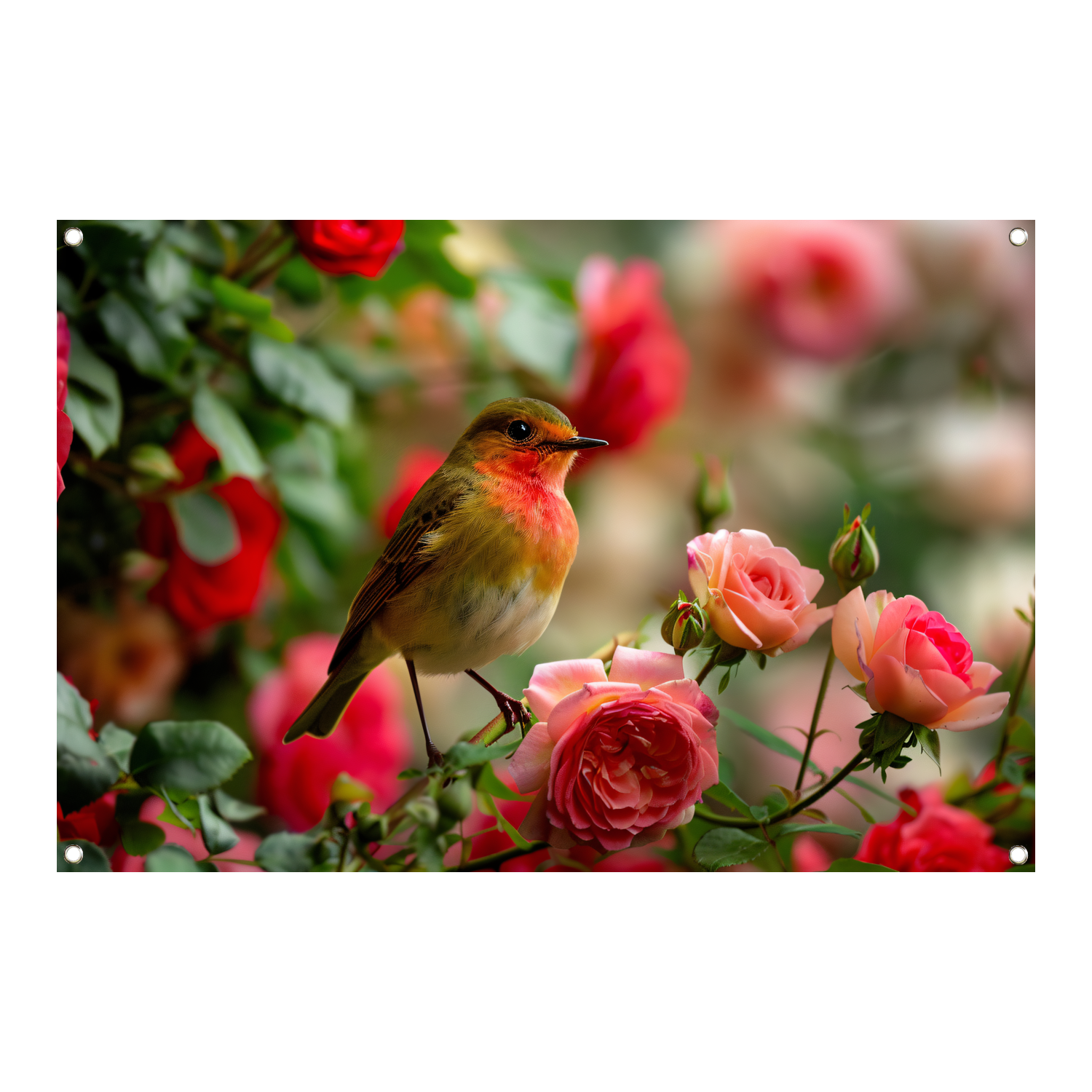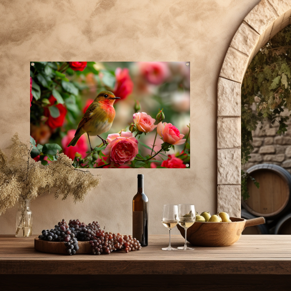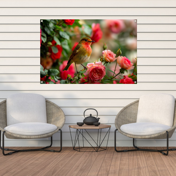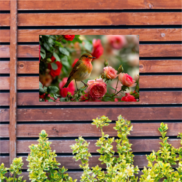 Onze tuinposters zijn UV- en waterbestendig, waardoor ze bestand zijn tegen zon en regen en hun kleuren langdurig mooi blijven. Alle tuinposters van De Muurdecoratie zijn voorzien van ringen in de hoeken, zodat je ze eenvoudig kunt ophangen. Let op: onze tuinposters worden niet met ophangsysteem geleverd.