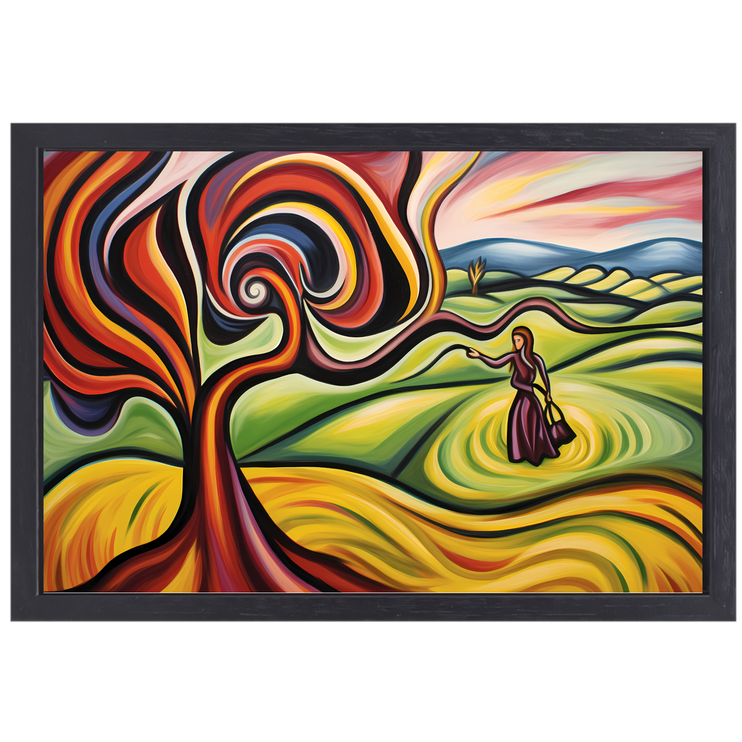 Elegante vrouw en kleurrijke natuur canvas met baklijst