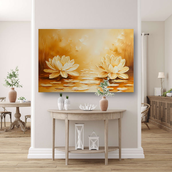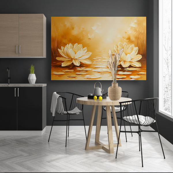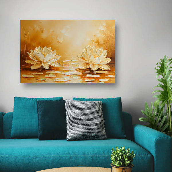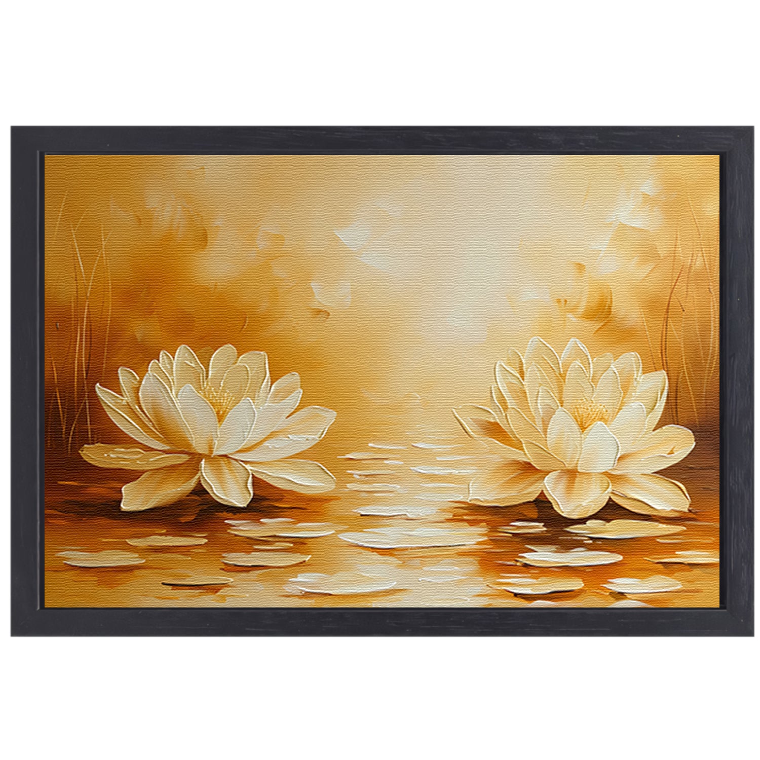 Elegante waterlelies in warme sepia tinten canvas met baklijst