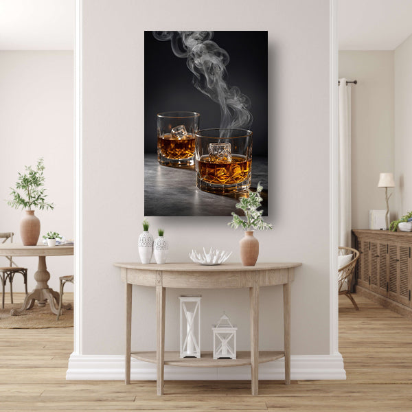 Elegante whiskeyglazen met rook op zwarte achtergrond acrylglas