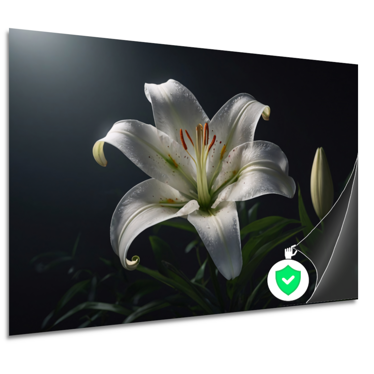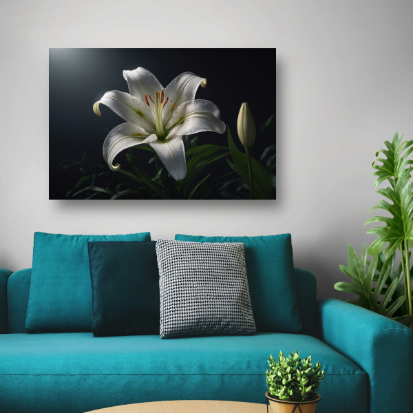 Elegante Witte Lelie met Waterdruppels poster